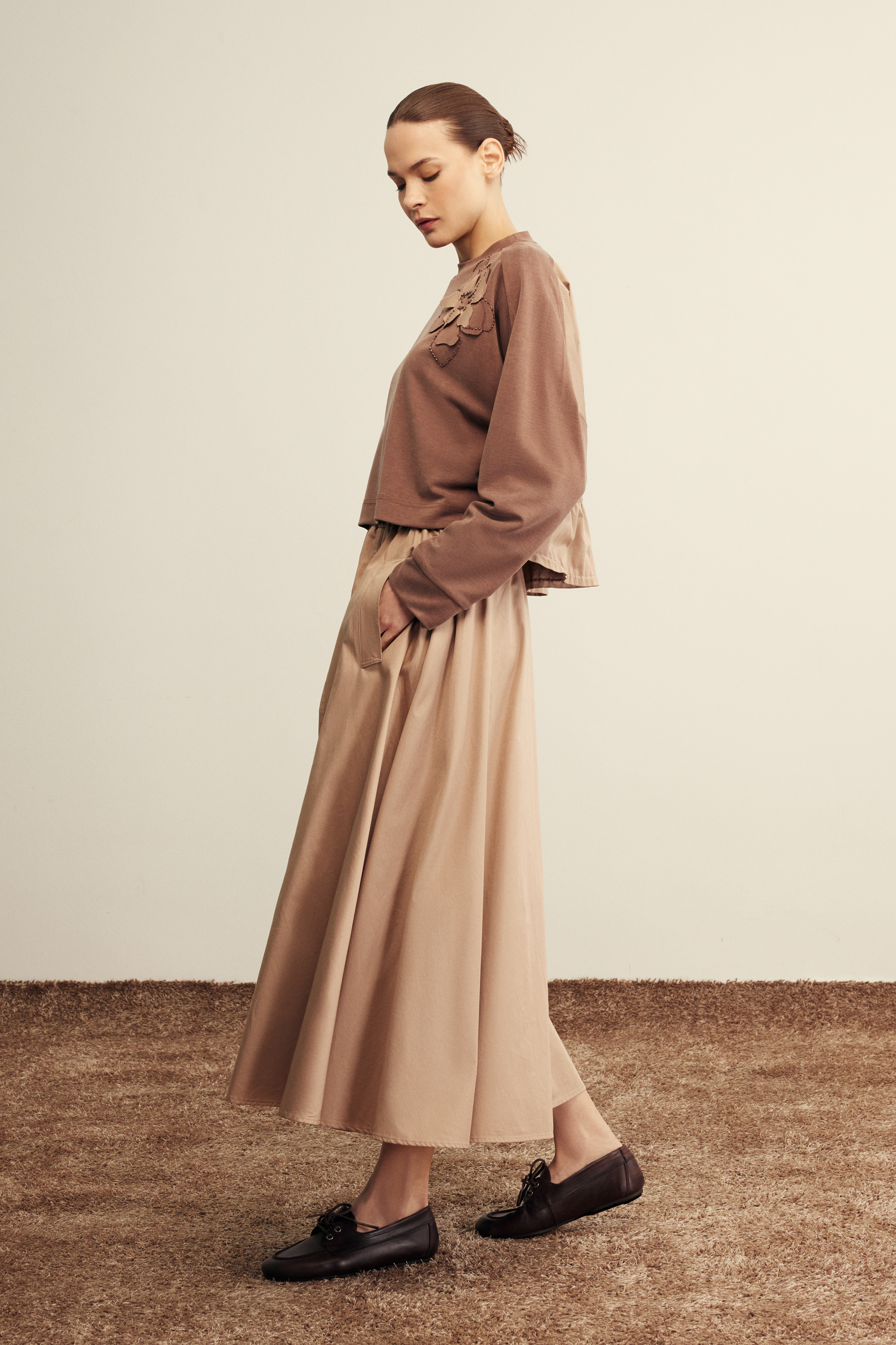 Mayla Bluz Beyaz Koyu Bej