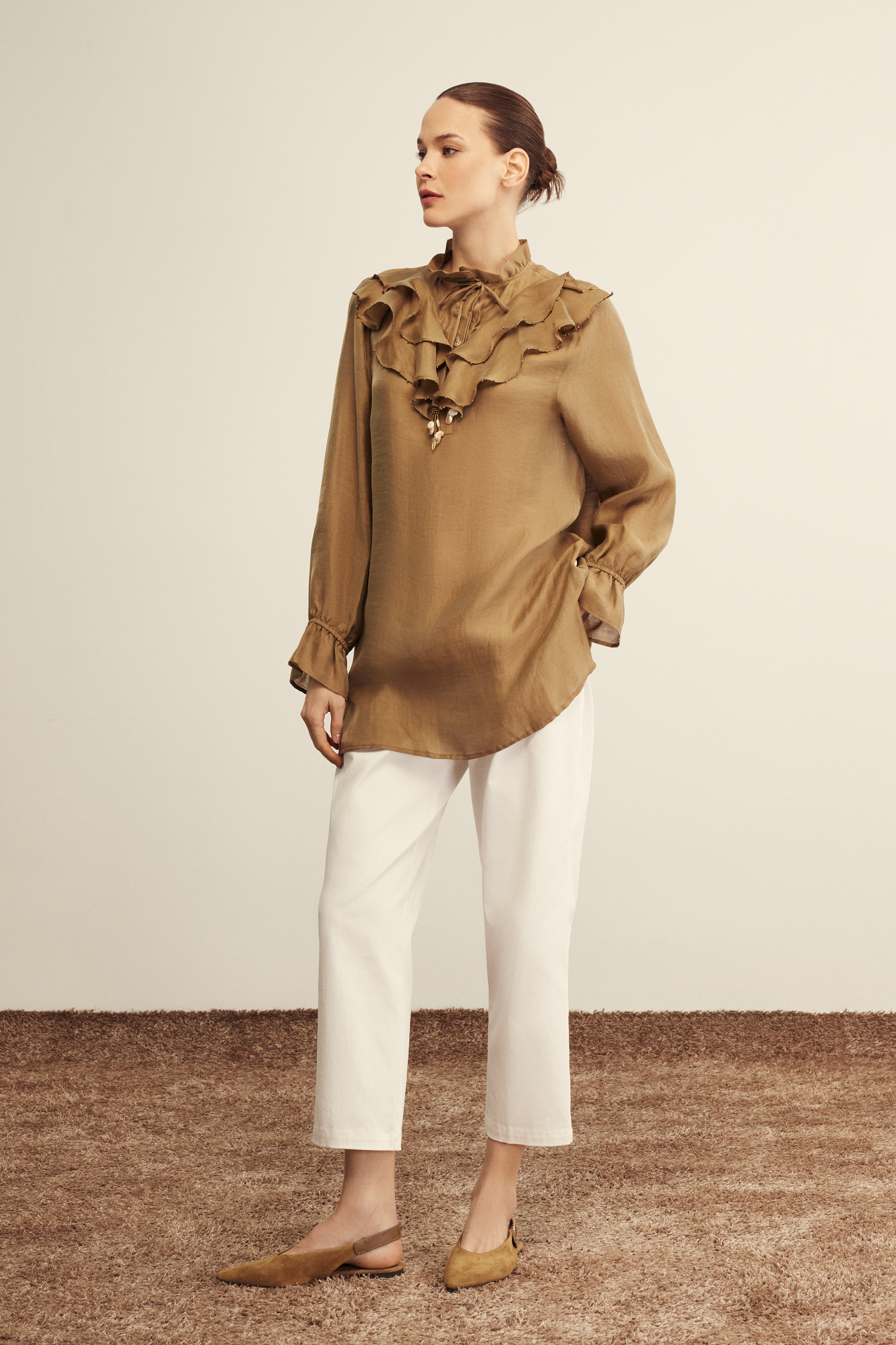 Mayla Bluz Beyaz Camel