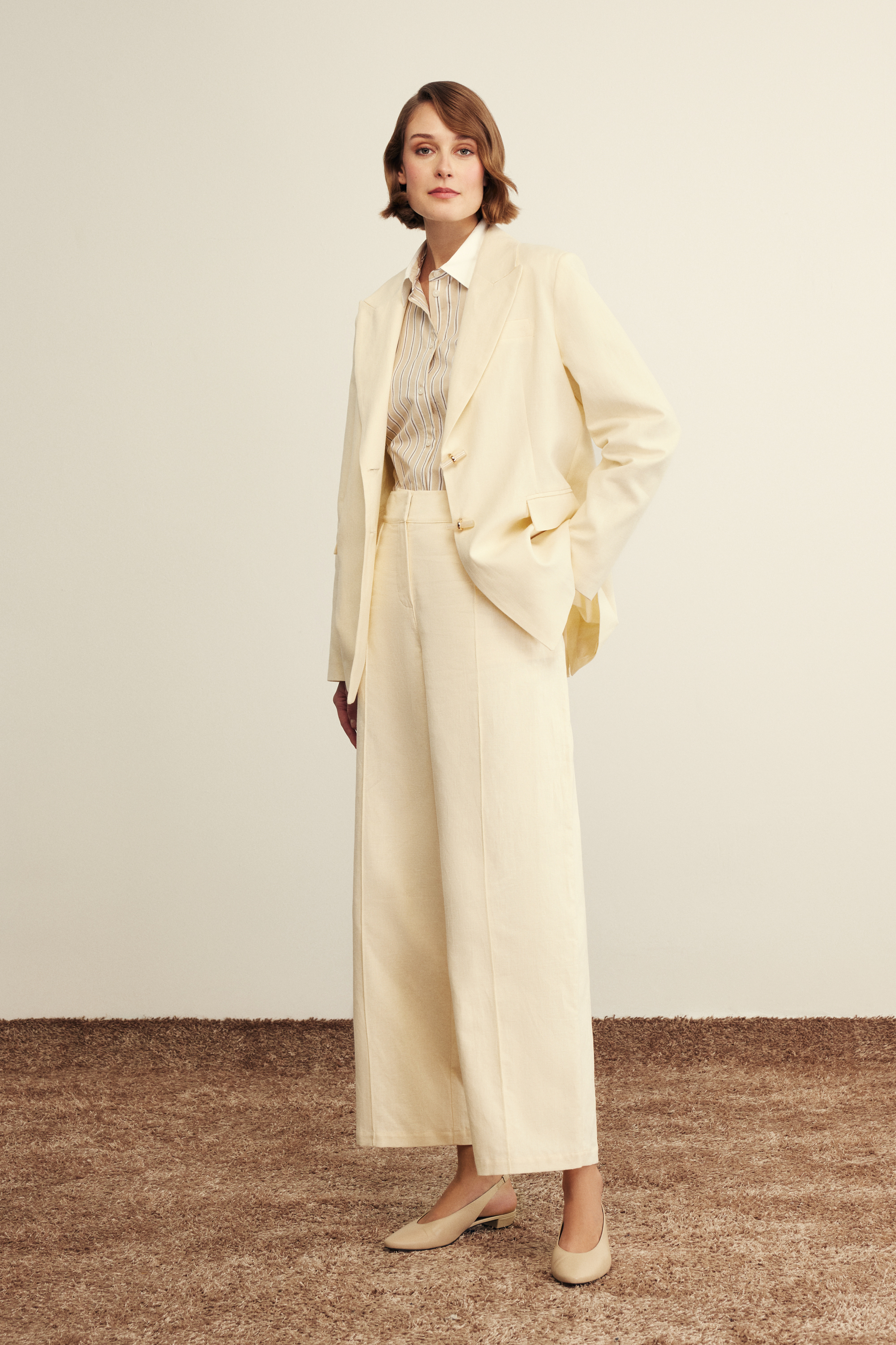 Mayla Bluz Beyaz Koyu Bej